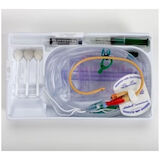 - 5cc silicone-elastomer coated latex Foley catheter preconnected to a 2000ml urine drainage bag. Waterproof underpad, fenestrated drape, 3 povidone iodine swabsticks, prefilled 10cc inflation syringe, 5g lubricating jelly, 2 gloves, specimen container with label. CSR-wrap covered tray, single-use, sterile.