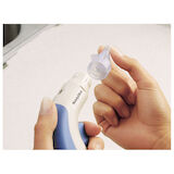 - Easy to use by heathcare professionals and patient satisfaction. Chamber regulates the output pressure to prevent damage to the tympanic membrane. Handle indicator will contrast in color when water is within 10 degrees of body temperature. Chamber automatic shut-off will shut off system if water reaches 110 degrees. Multi-functional disposable tip. Device can be moved easily from location to location via a storage tray. One-year warranty.
